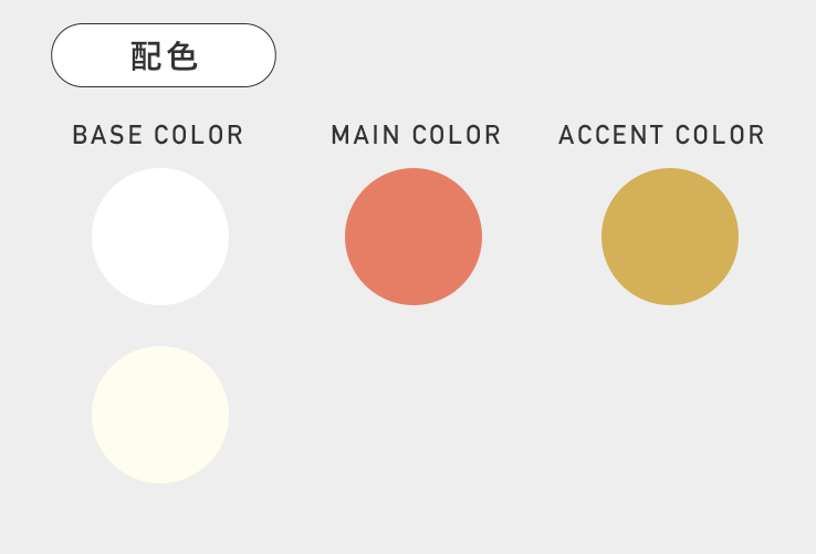 メインカラーをオレンジ系、ベースをホワイトとベージュを使用しました。このカラーを選んだ理由は、『世界をやさしさでつつむ』というキャッチコピーから、優しく暖かい印象を与えられて、企業の世界観も伝えられると思いました。