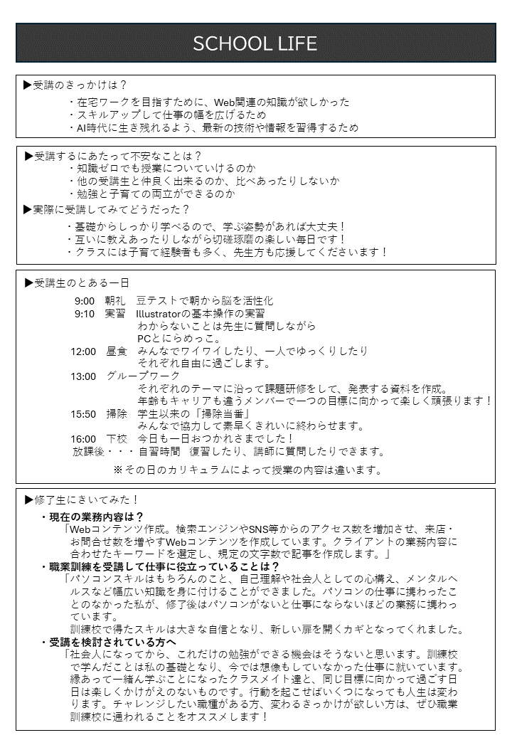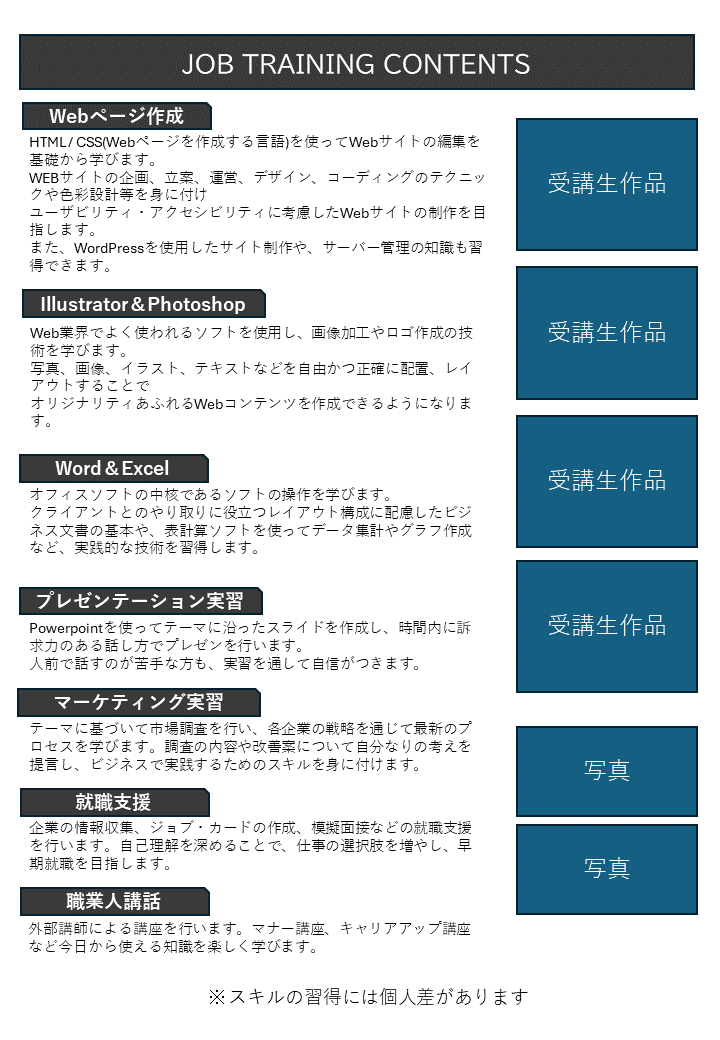 【concept】訓練修了後の自分のスキルを想像できるよう、通常ありがちなパンフレット