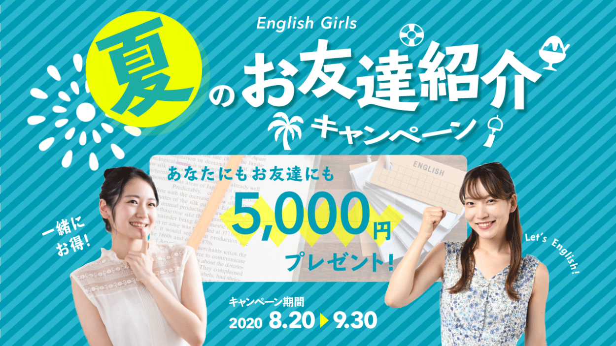 英語を学ぶことを連想させる背景を入れ、「一緒に お得な 英会話」、「Let's English!」の文言を入れました。