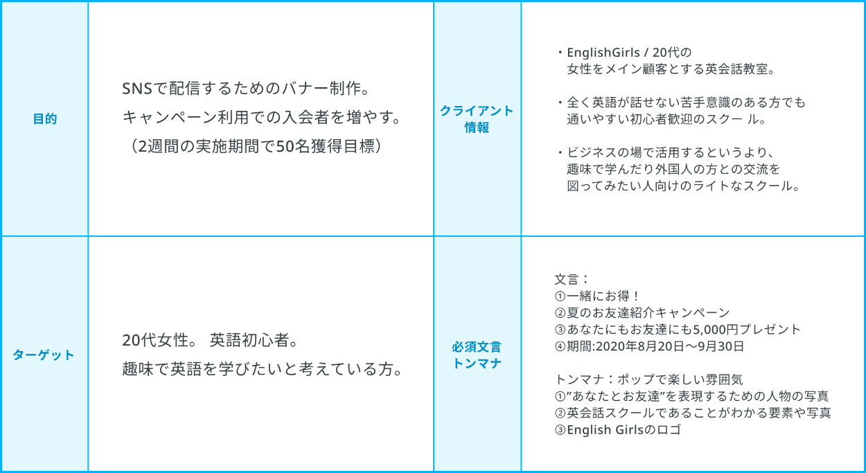 情報過多な印象を受けたバナーだったため、必須文言以外はカットをし、必要な情報がしっかり伝わるようにしました。