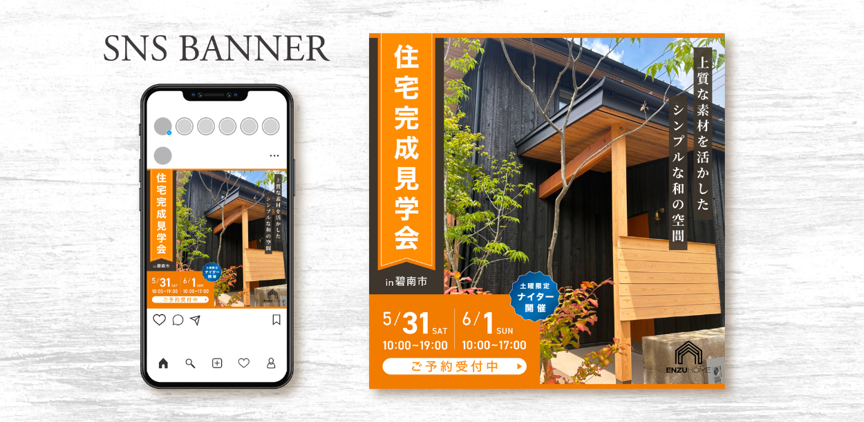 住宅完成見学会の広告バナーを制作させていただきました。 使用ツール:Illustrator 制作期間:1日