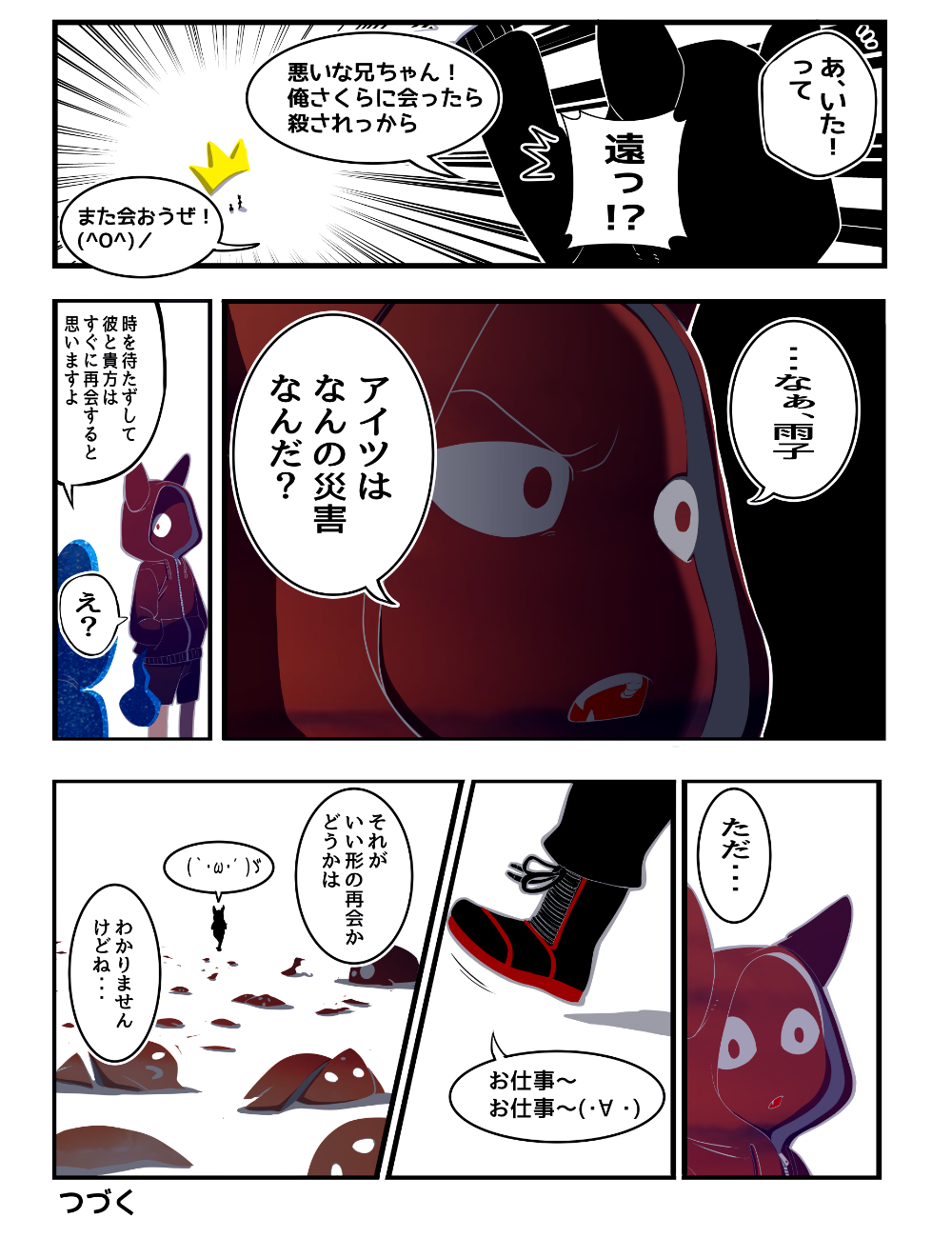 写真漫画・イラスト yukimaru イラストレーター OVERVIEW 写真の『色』を使って製作 イラスト①【使用ソフト】 CLIP STUDIO PAINT【下書き】 50分【彩色】 10時間イラスト②【使用ソフト】 CLIP STUDIO PAINT【下書き】 30分【彩色】 15時間短編漫画個人で連載中の漫画『四次災害』