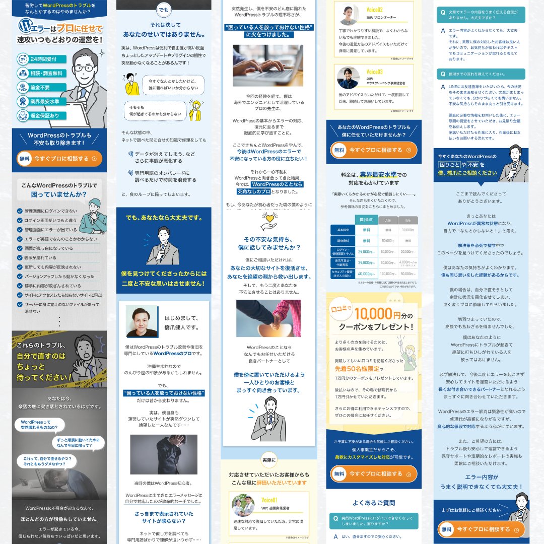 WordPressのエラー改善サービスのLPのライティングを担当しました。