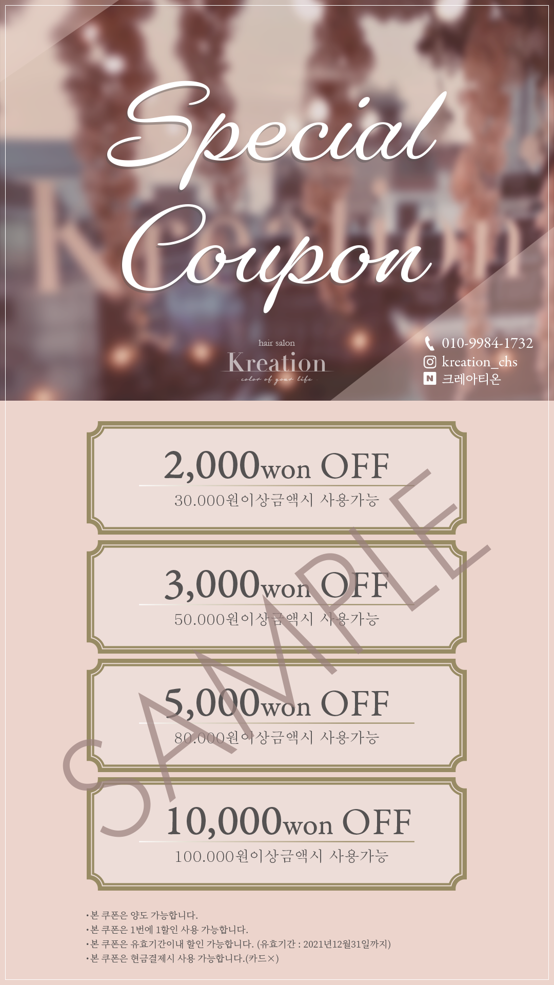 韓国・ソウル市のヘアサロンのため、クーポンなどは韓国語で作成しております。