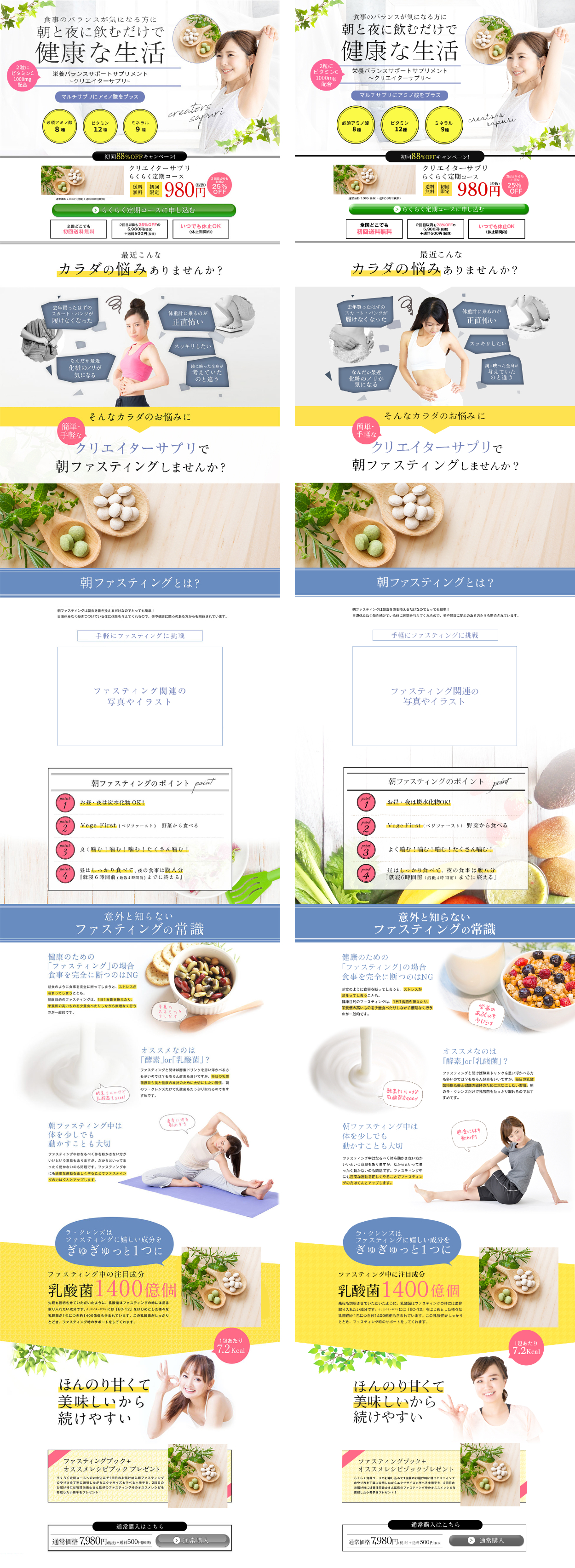 ・朝ファスティングのポイントの表の背景画像が見本は途中で白のグラデーションになっているのですが、私は徐々に白のグラデーションをかけ野菜を見えるようにし健康的な生活をイメージしてみました。