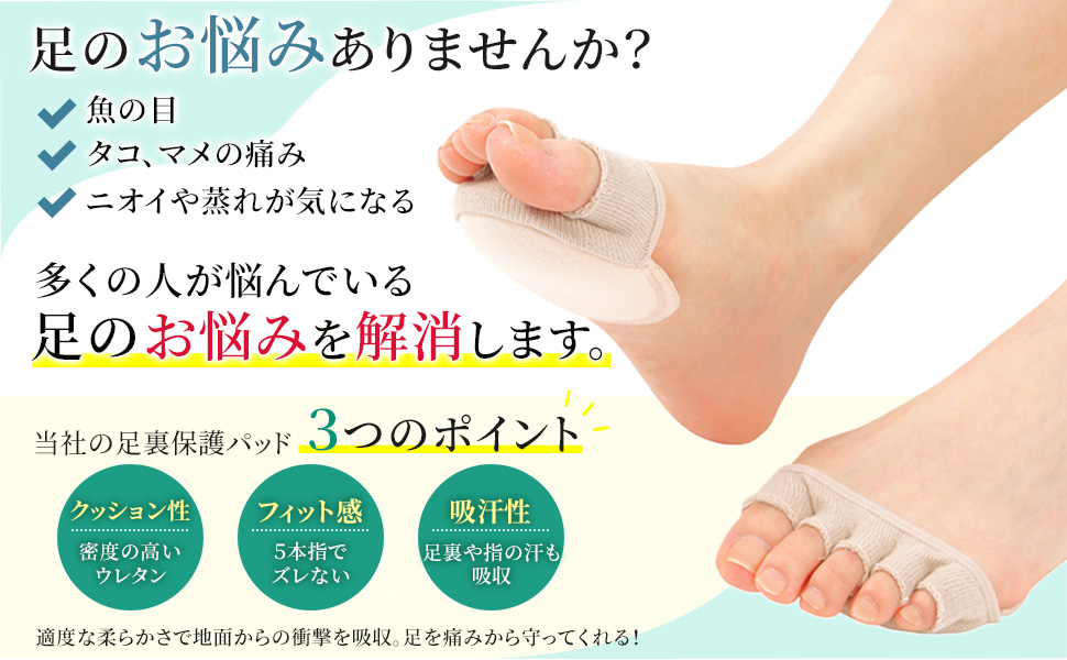 足裏保護パッドの商品画像 yoko フリーランスWebデザイナー ECサイト(Amazon)で使用される足裏保護パッドの商品画像を制作ターゲット:20代〜50代 女性使用ツール:Photoshop・Illustrator