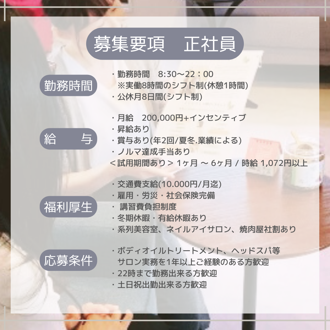 フォントもサロンのイメージに繋がる部分はフォーマルなものを、