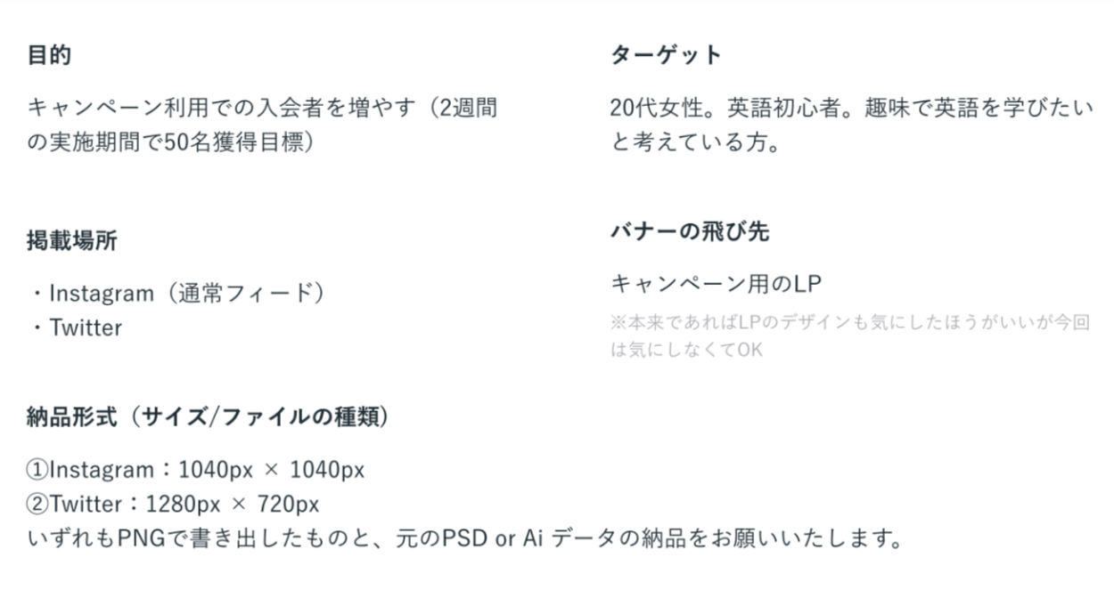 - Zの目線の流れとストーリーが揃うようにし、最初にお得感の認知と、次に英会話教室であることが伝わるように作成しました。