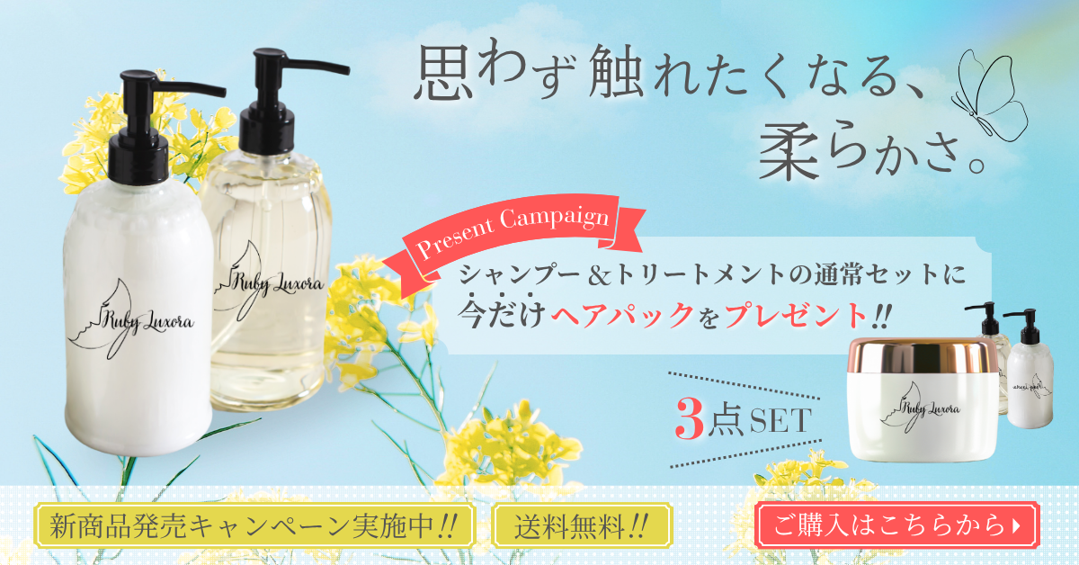 通常シャンプー・トリートメントのセットに今だけ、ヘアパックをプレゼントの3点セットキャンペーン(送料無料)
