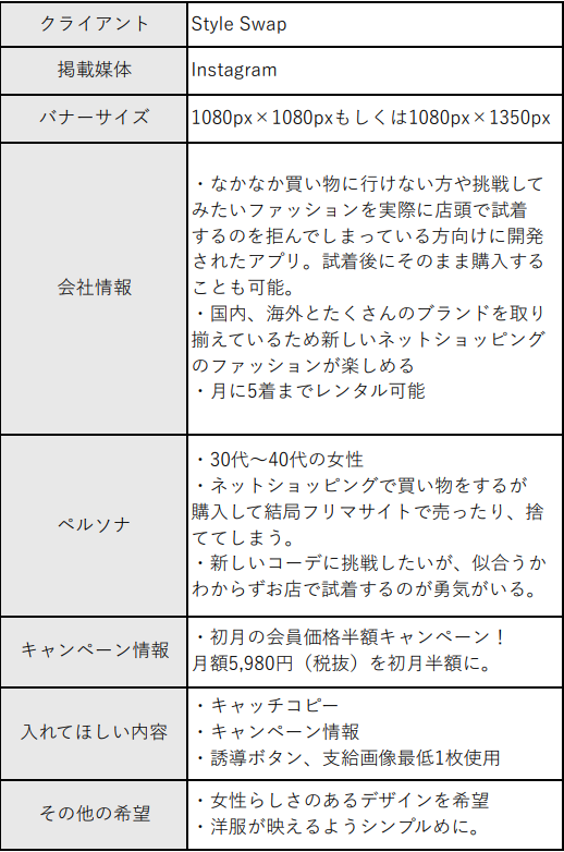 ②洋服がきれいに並べられている写真を使用。洋服のイメージや清潔感を感じ、購買意欲を持たせる。
