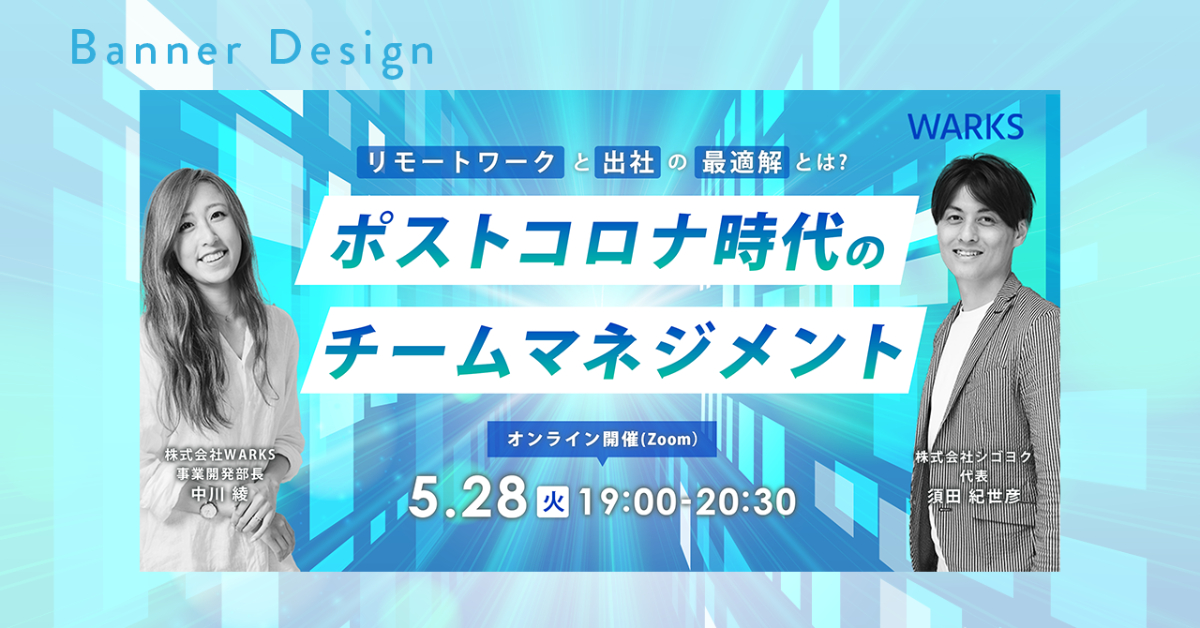 架空のBtoB企業「株式会社WARKS」が開催するオンラインセミナーの集客バナーを制作しました。