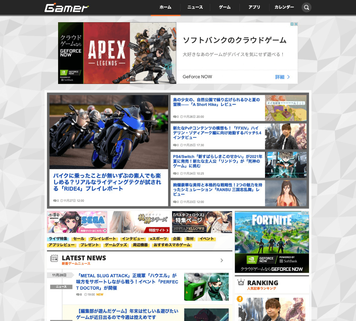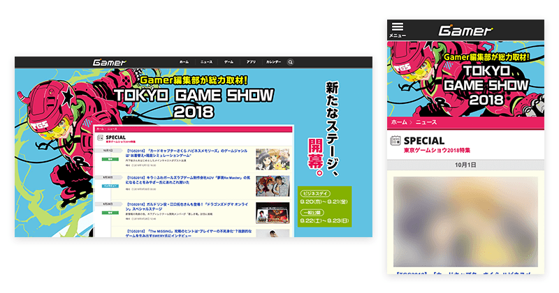 ゲームに関するニュースやゲーム情報のデータベースを取り扱うメディアサイト「Gamer」のデザインリニューアル。バックエンド以外は、ワイヤーフレーム作成からデザイン、コーディング、スケジュール管理、リリース作業までほぼひとりで担当しました。