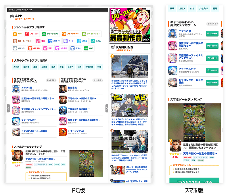 アプリの紹介ページではスライダーの挙動を変えたりコーディングで要素の位置を調整したりなど、どのデバイスでもユーザーが情報を探しやすいように考慮して設計しています。