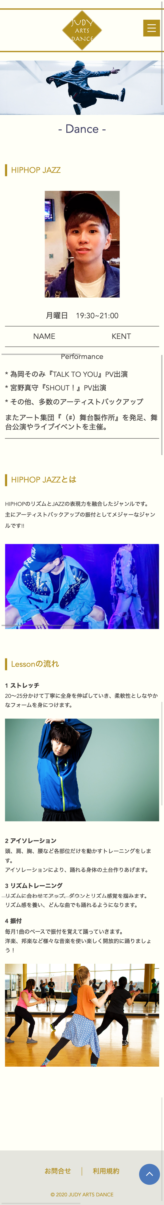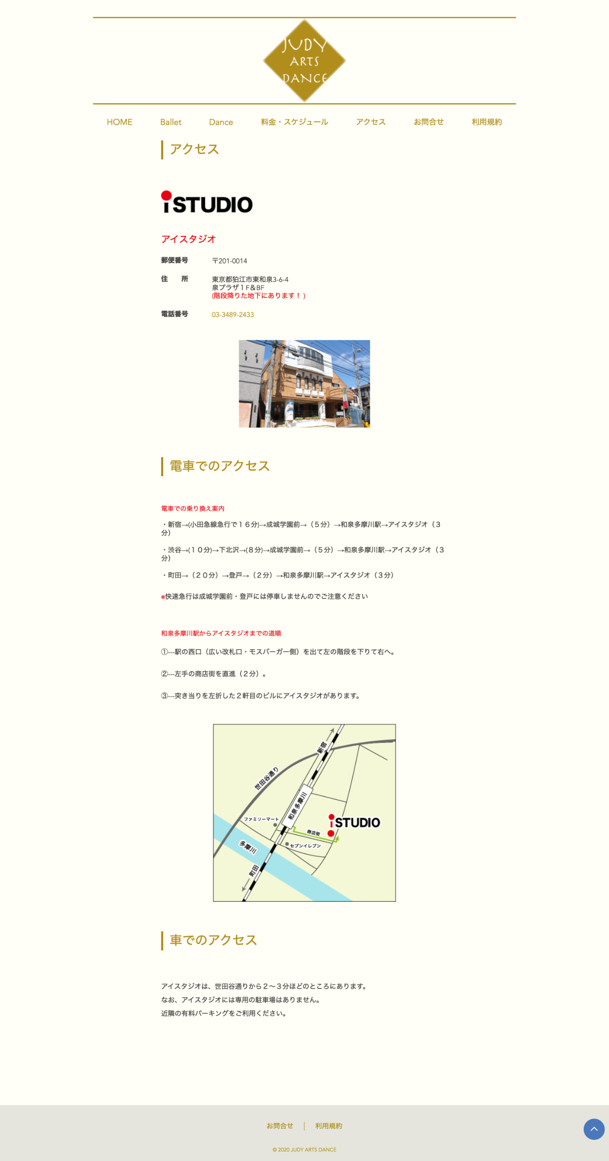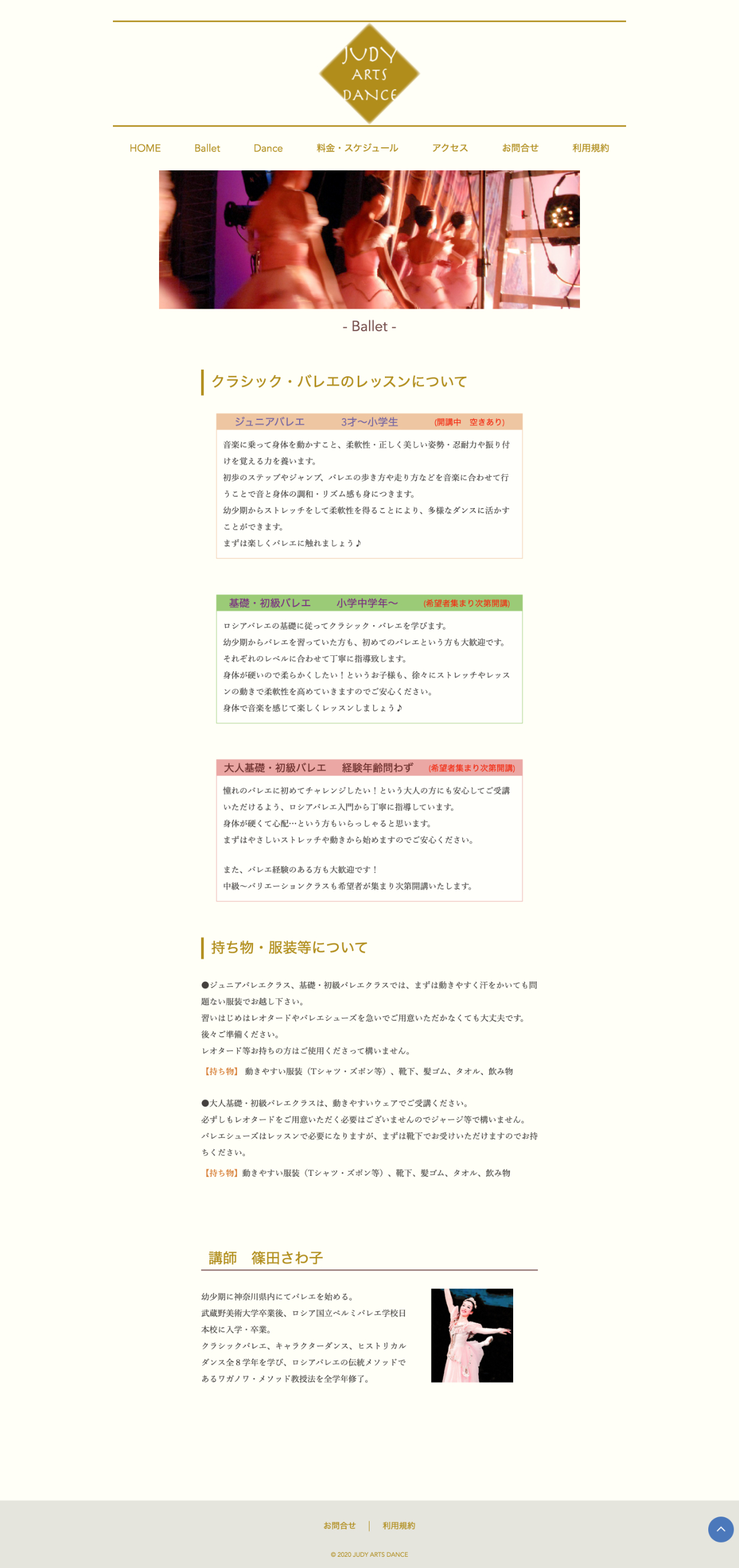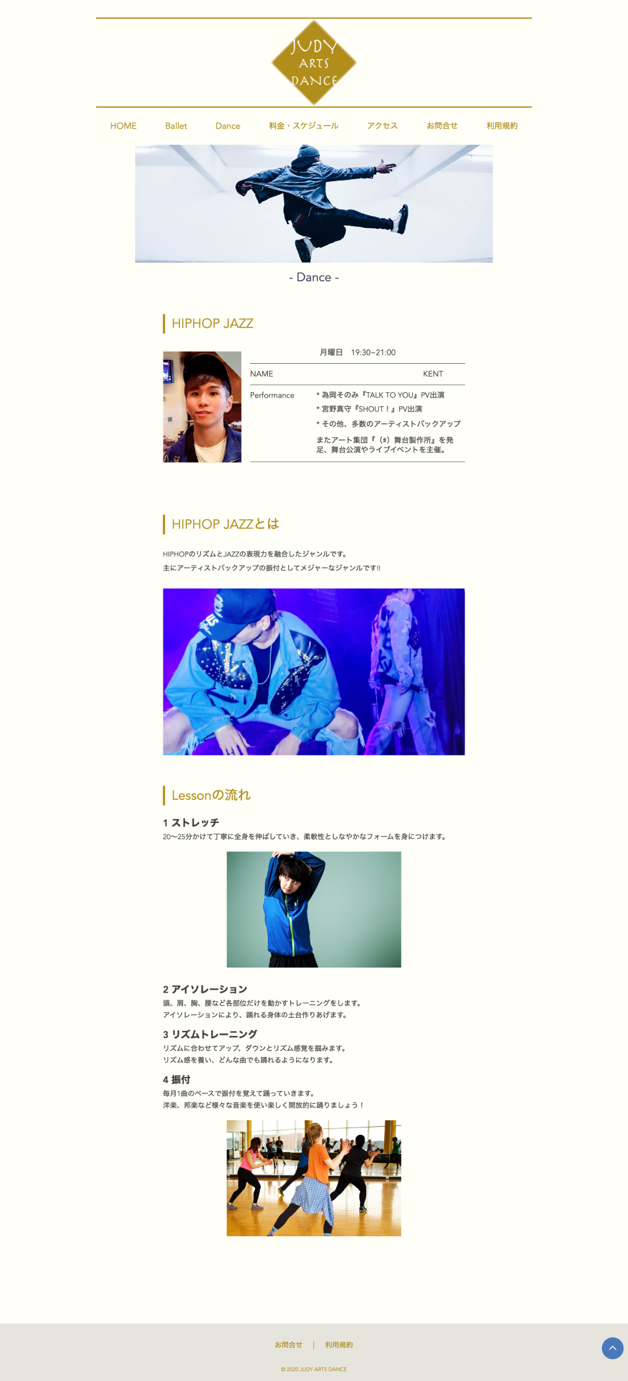 友人がバレエとヒップホップのダンススタジオを開く為に制作したWebサイト。