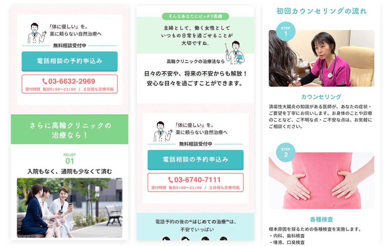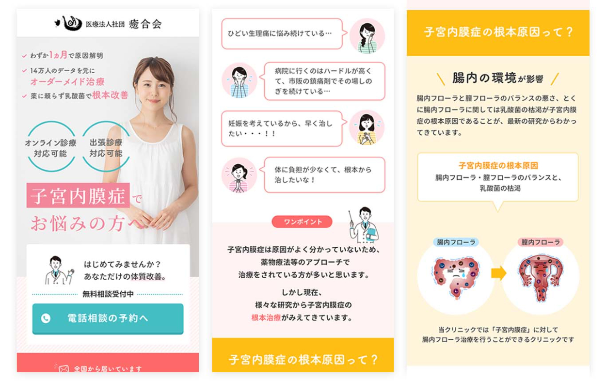 スマホユーザーをメインに、女性に多い病気のためターゲットを女性に決めデザインからコーディングまでを制作。
