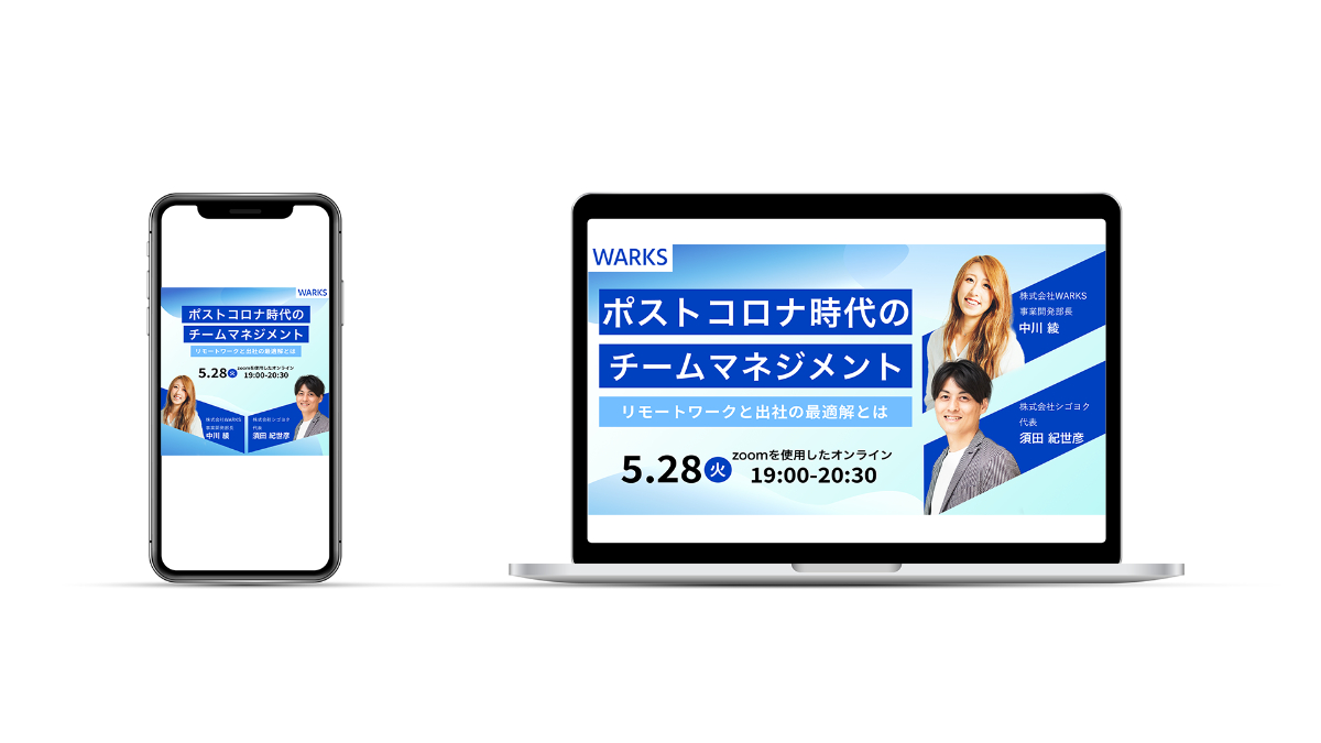 「ポストコロナ時代のチームマネジメント」を最も訴求したいテーマとして扱い、タイトルが自然と目に入るようレイアウトの主軸に据えて設計しました。