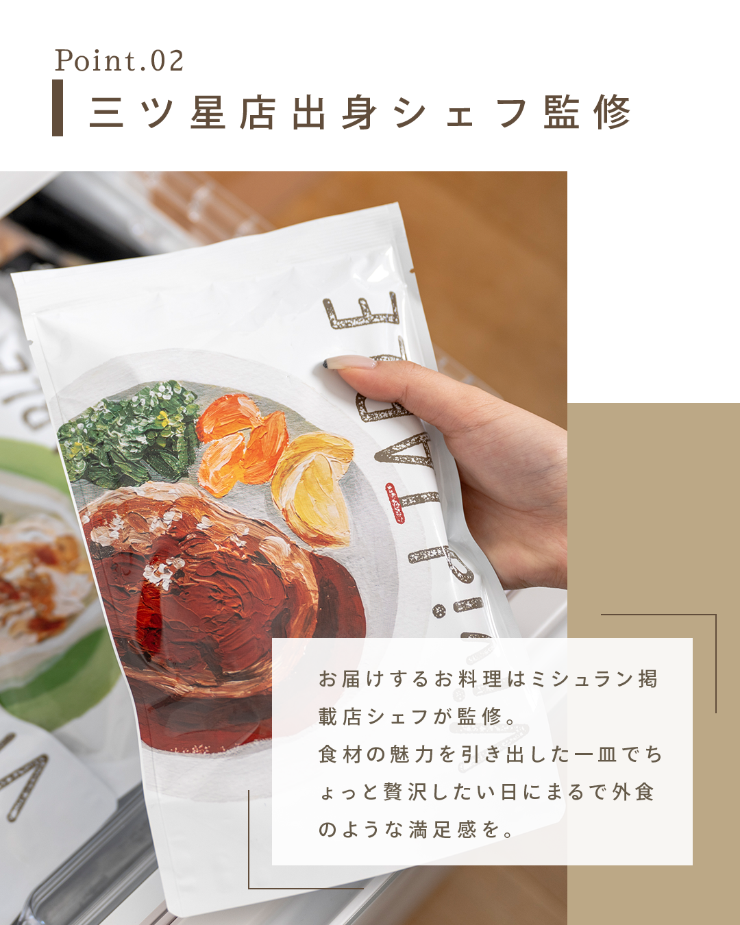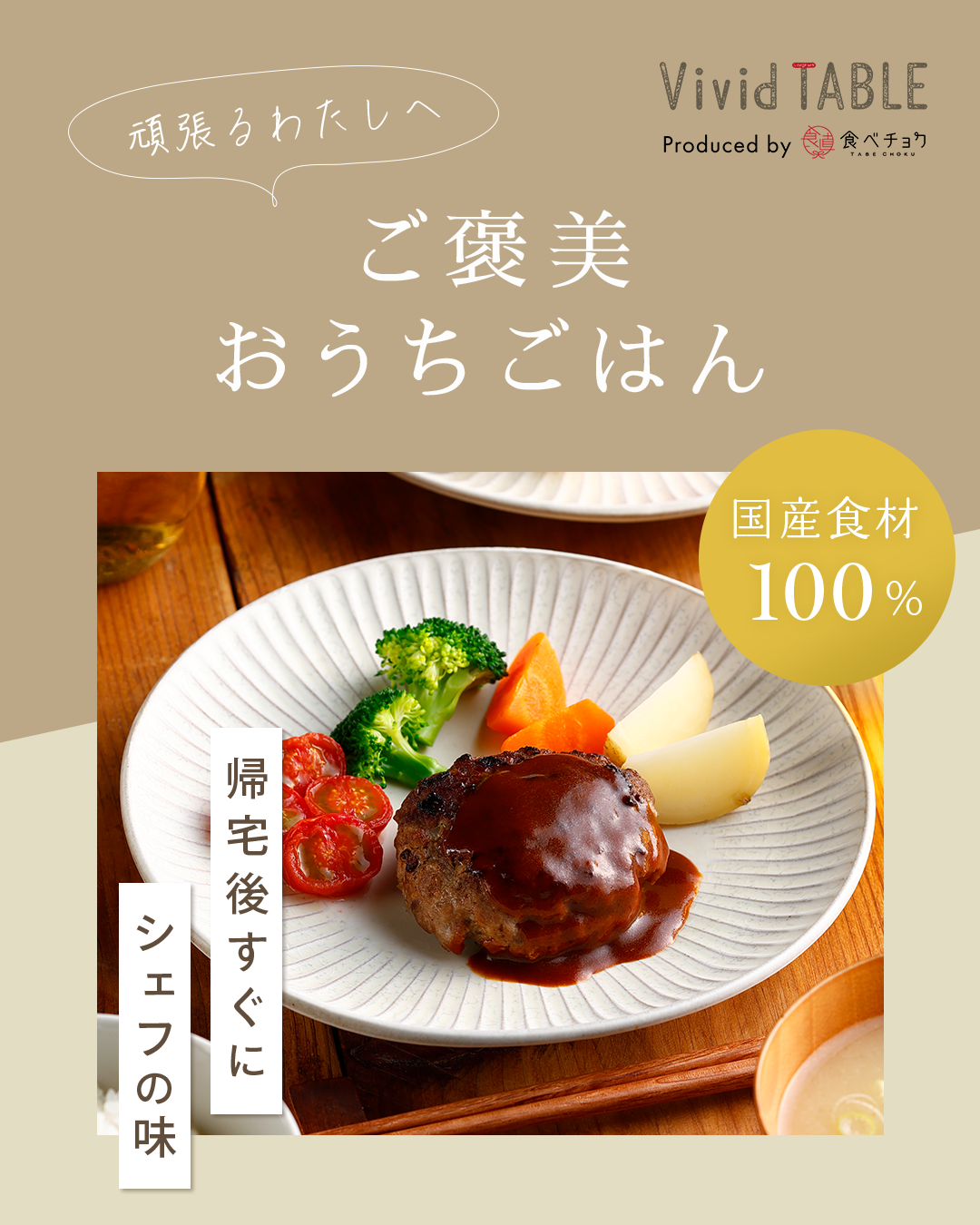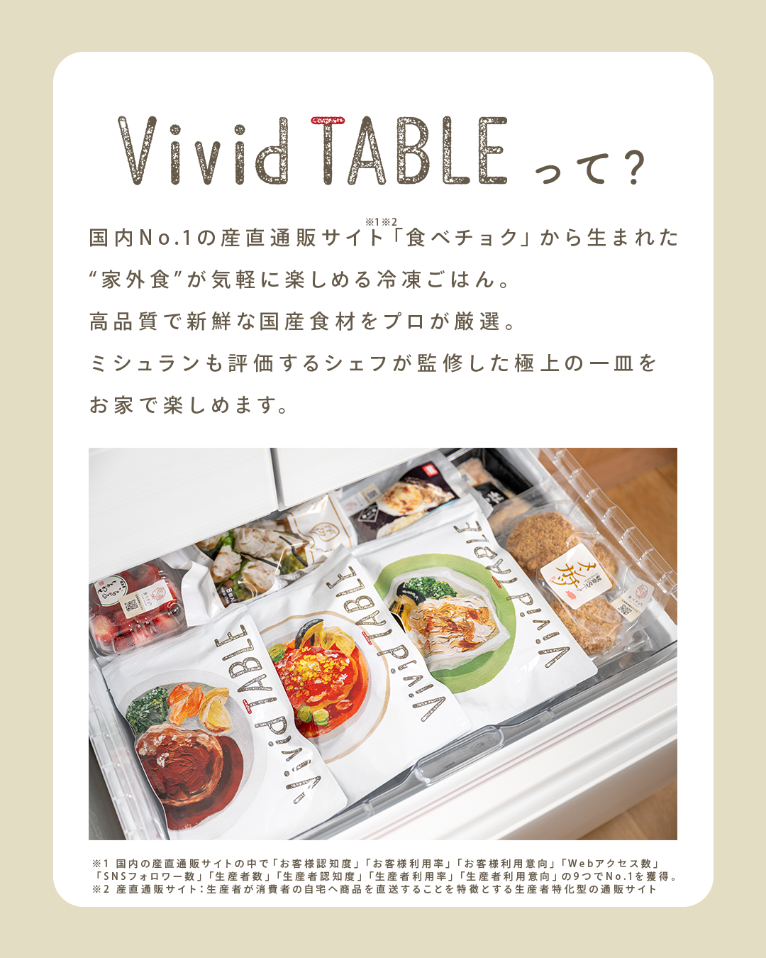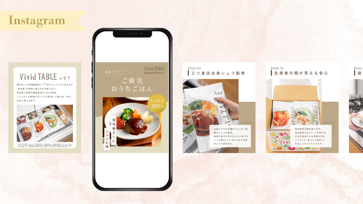 競合他社との差別化ポイントとして「国産食材」「三つ星店出身シェフ監修」「食べチョク初のブランド」をしっかりとクリエイティブに反映しました。