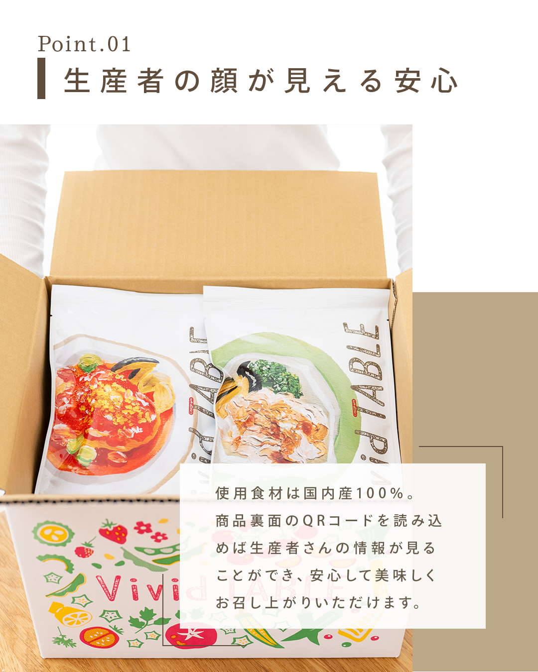 コンペ応募期間が長かったため、実際に自身でも商品を取り寄せ、実際の消費者の気持ちとして手軽さや生産者の見える素材の安心感をクリエイティブにも反映しました。