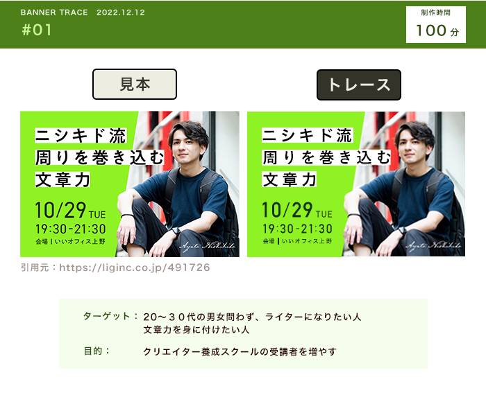 【課題】バナートレース:クリエイター養成スクールのバナーをトレース