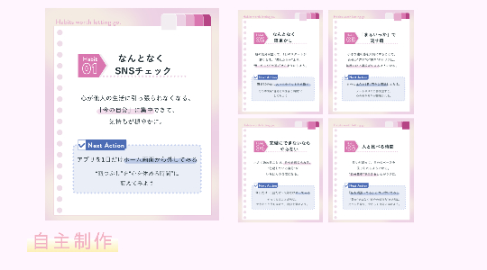 ・ターゲットの年齢層を考慮し、全体的に落ち着いたトーンで仕上げた。