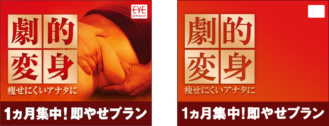 ドロップシャドウの加減が難しく見本よりふわっとしてしまった。「劇的変身」の内側と四角の影を同じ効果でやろうとしたが上手くいかなかった。「劇的変身」の文字はやはり切り抜きではなく、文字自体に内側のシャドウ等の効果を使用していると思われる。