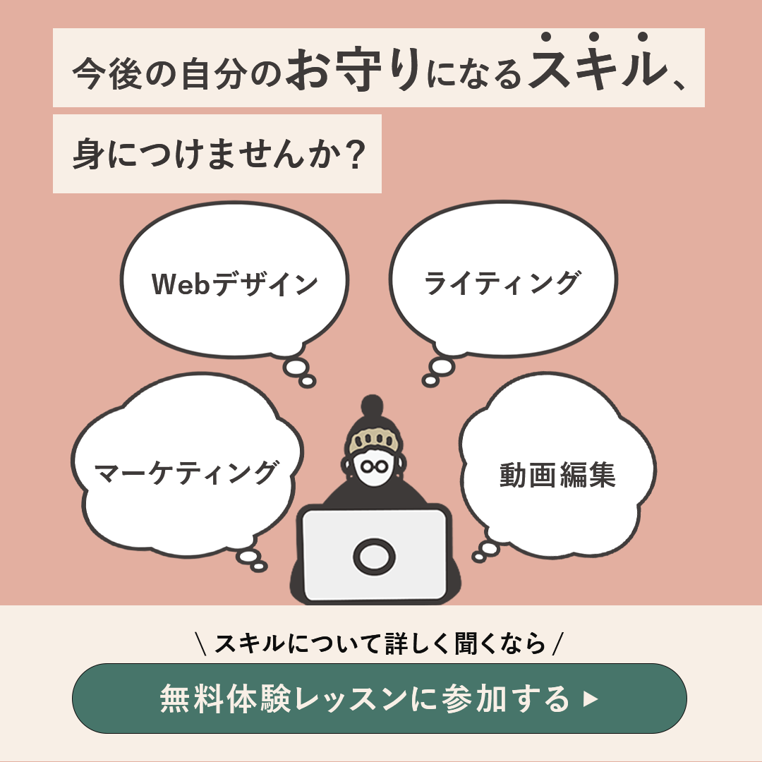 - バナーの目的が「手に職スキルの紹介」だったので、「お守りになるスキル」の言葉がキーワードになると捉え、文字サイズを大きく配置しました。