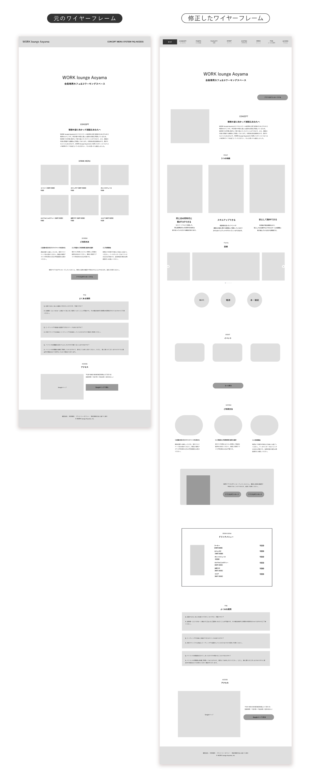 また、視認性の大切さも学びました。デザイン性を意識しすぎて視認性が低い状態だと、途中で離脱されてしまったり、コンバージョンに繋げることができずHPの役割を果たすことができないことに気づきました。