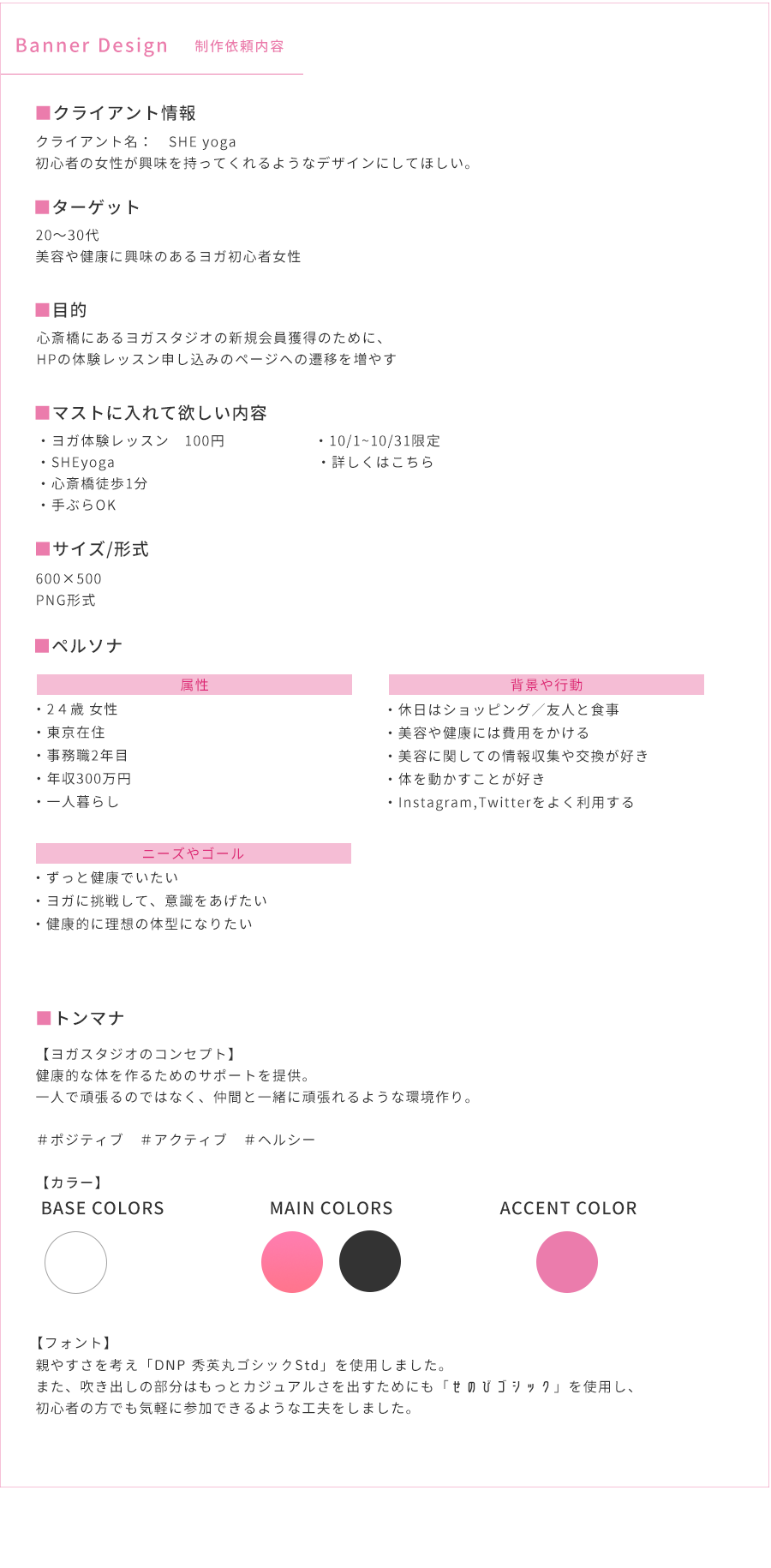 架空のヨガ教室の体験バナーを作成しました。 制作時間:10時間