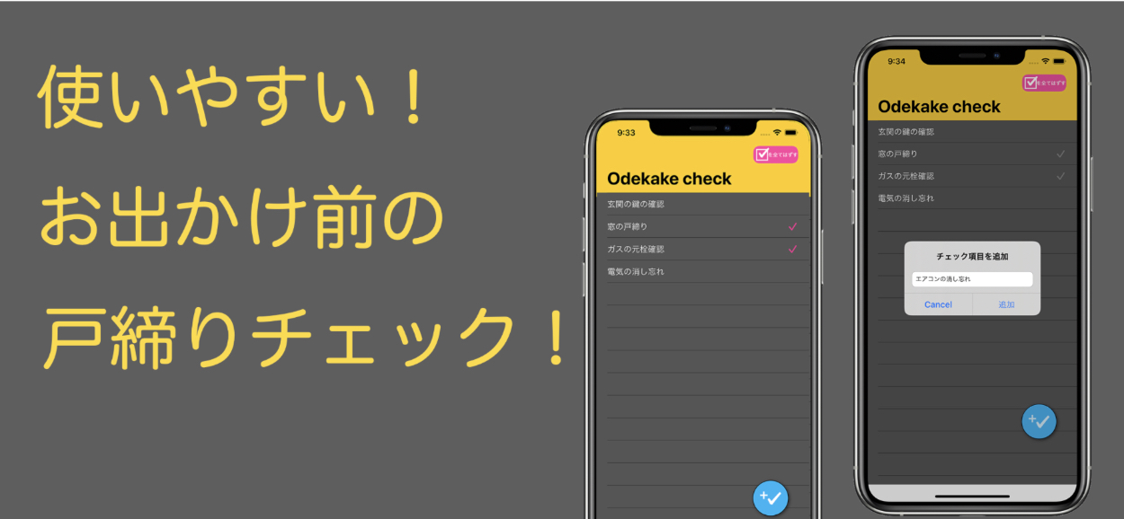 とにかく自分の作ったアプリをリリースしてみたく、ネット上でTodoアプリの作り方を確認して、App Storeへリリースしたアプリ。アプリの作成よりStoreへのアップとRegectとの戦いに苦労した印象。