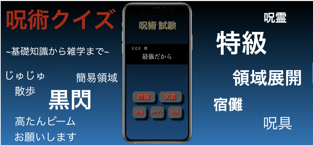 呪術廻戦にハマったため作成したアプリ。上記の鬼滅試験をベースにして作成を行った。