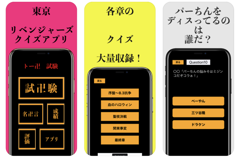 上記の鬼滅試験をベースにして作成を行ったアプリ。自身のアプリの中で一番のダウンロードされており、レビュー数も自身のアプリの中でトップを誇ります。