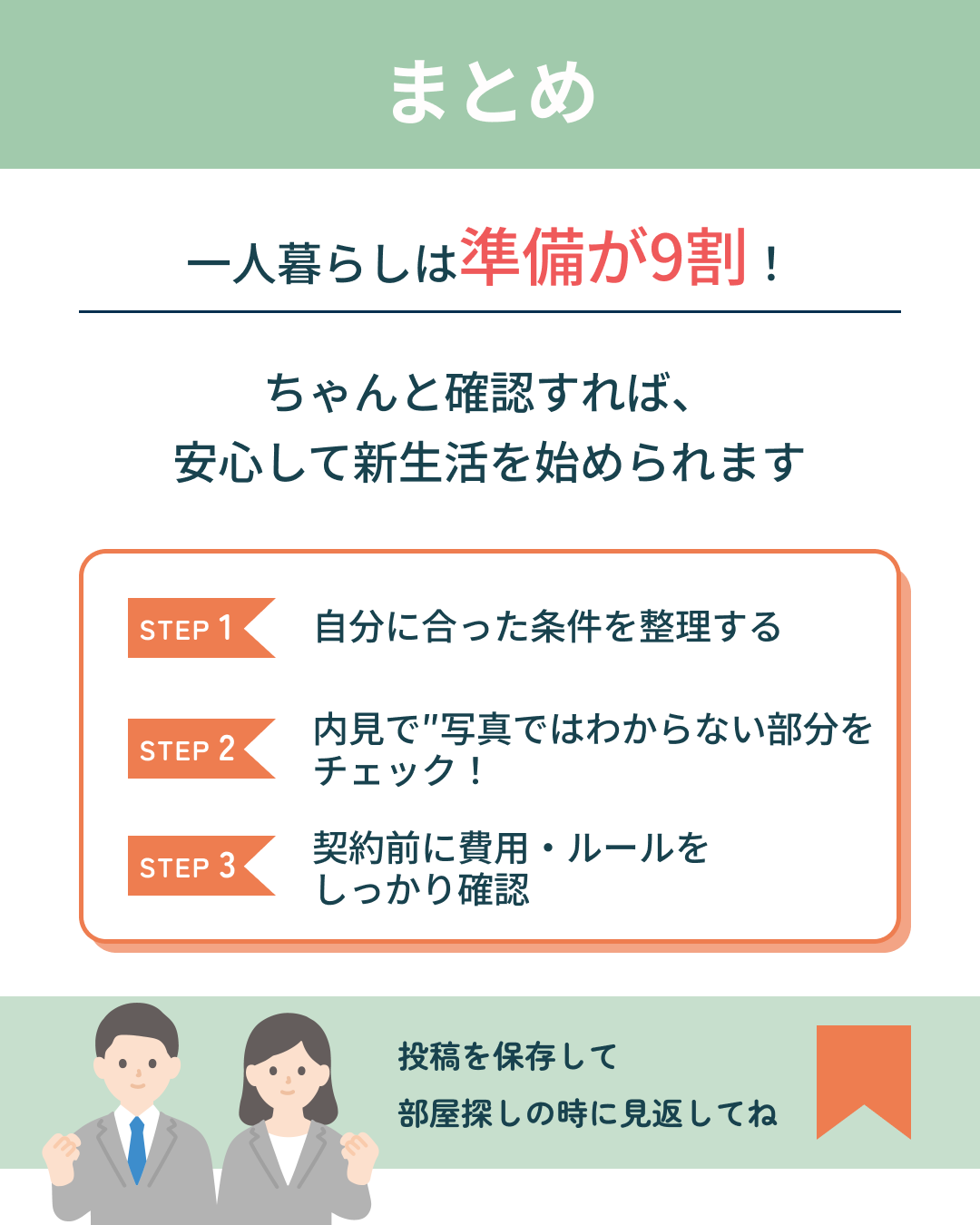 ・初めて一人暮らしをする20代前半の男女に向けて、賃貸選びのお役立ち情報を発信する投稿