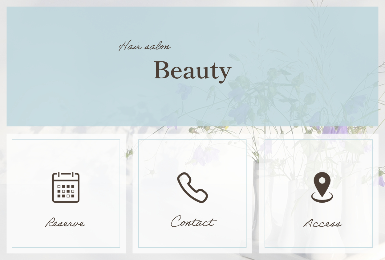 →美容室のイメージカラーが淡いブルー系で落ち着いた雰囲気な為、背景にお花を設定しています。