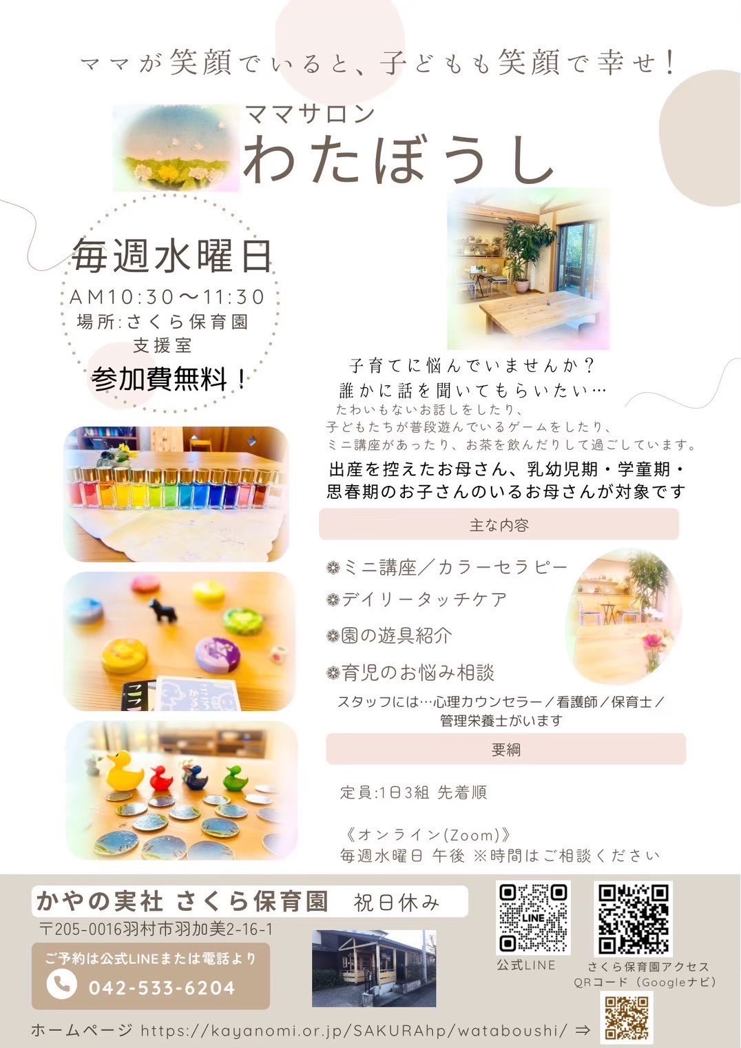 「わたぼうし」はママ主体のサロンです。