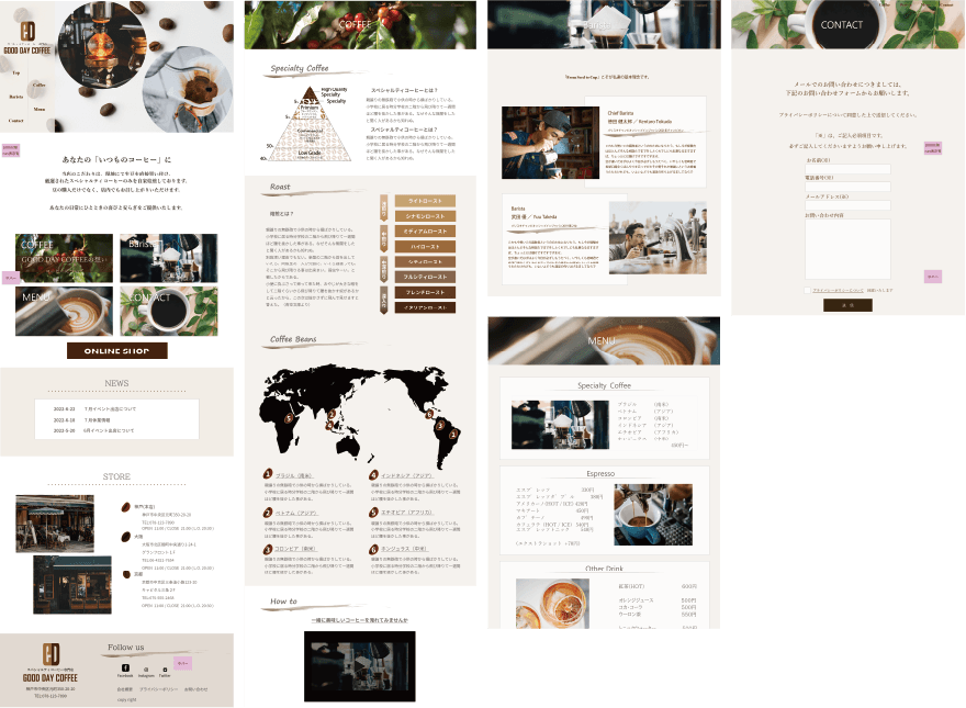 ・背景色は濃い茶色しないように →喫茶イメージをつけすぎず、少しラフに
