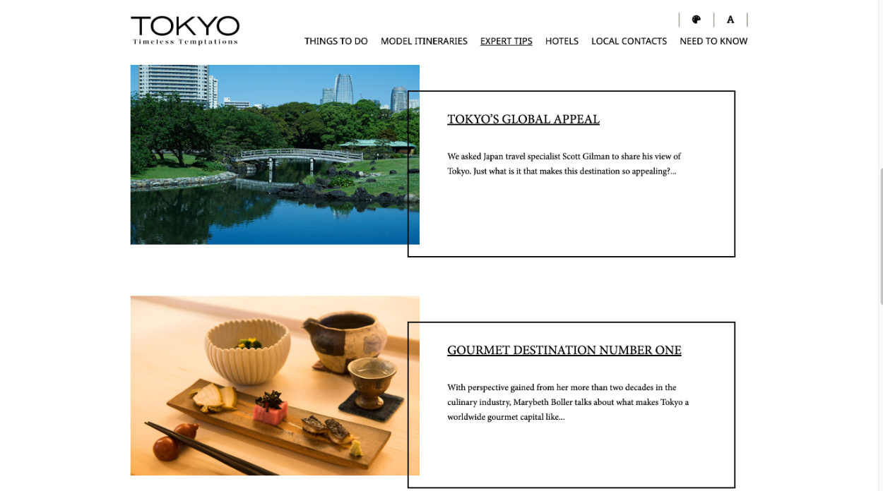 写真を多く表示させて東京の魅力を伝える工夫もしています。