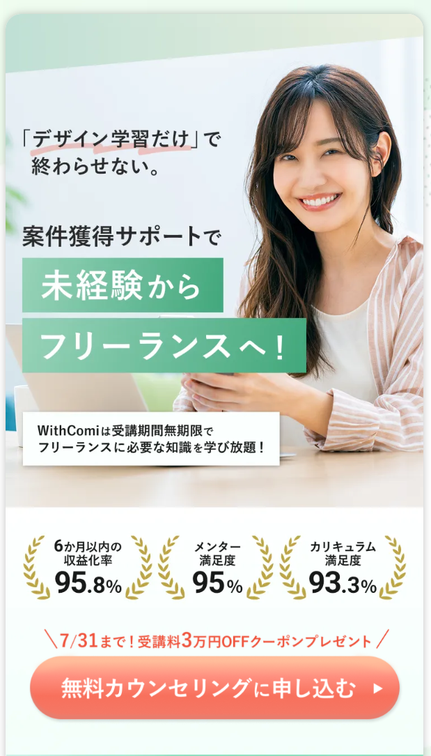 既存LPをトンマナに合わせる(https://withcomi.com/)