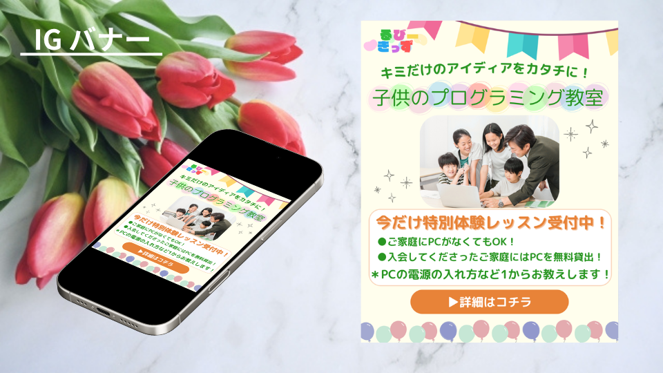 【情報設計】 ペルソナにある「6歳〜12歳の小学生のお子様とその親御様」「お子様向けのポップなイメージの雰囲気」を一番意識した。画像を真ん中に入れて、教室の様子がわかるようにした。