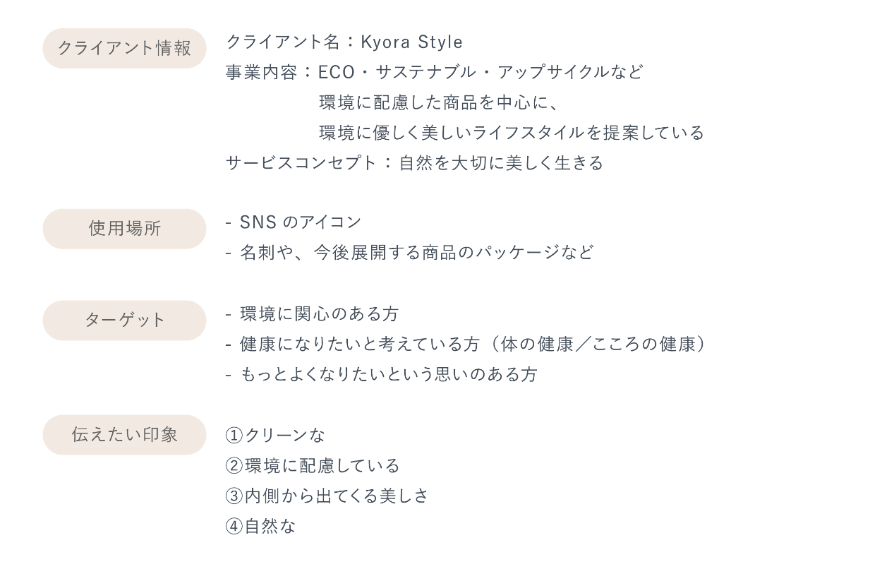 Kyora Style の想いをお話しして、まんまをぎゅっと詰め込んで、とても素敵に、イメージ以上に作ってくださって、このロゴデザインが大好きで愛おしいです〜!!