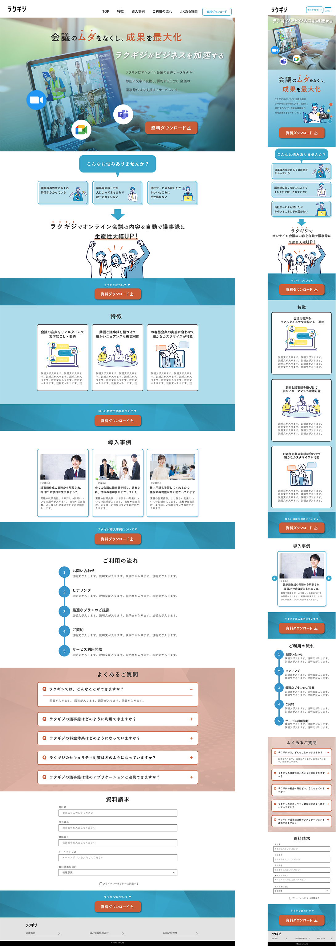 【課題制作】架空AI議事録作成ツールのLP