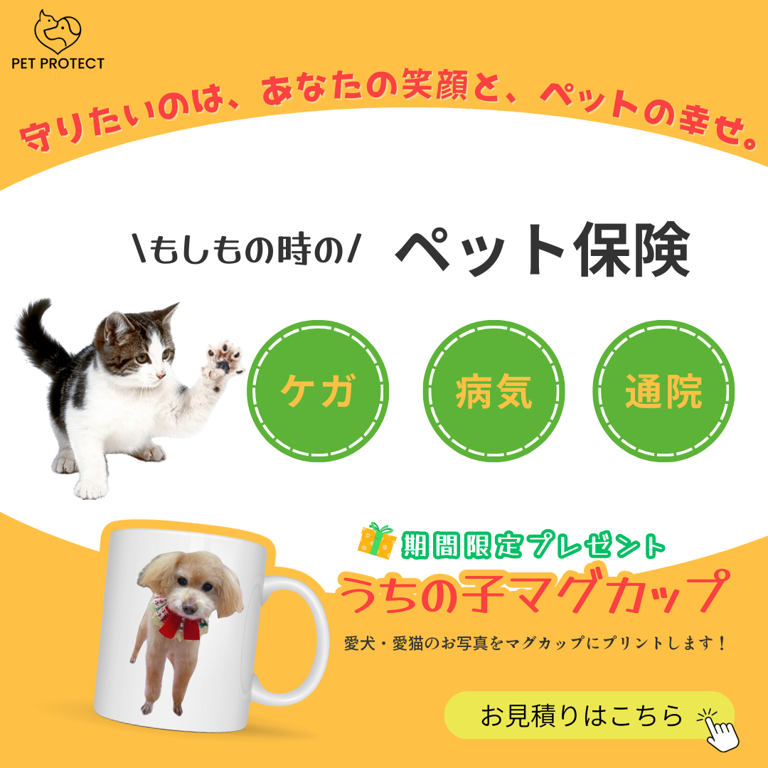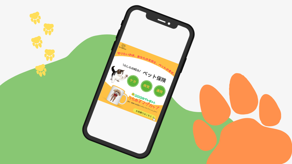 今回ペット保険に加入でペットをプリントしたマグカップがもらえるキャンペーンということで、保険も大事ですがマグカップがもらえることに注目してもらいたいという思いで作成しました。