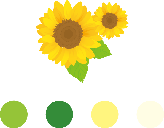 ・全体的に色が濃いので、やわらかさが出るようにかつ「ひまわり」とロゴカラー