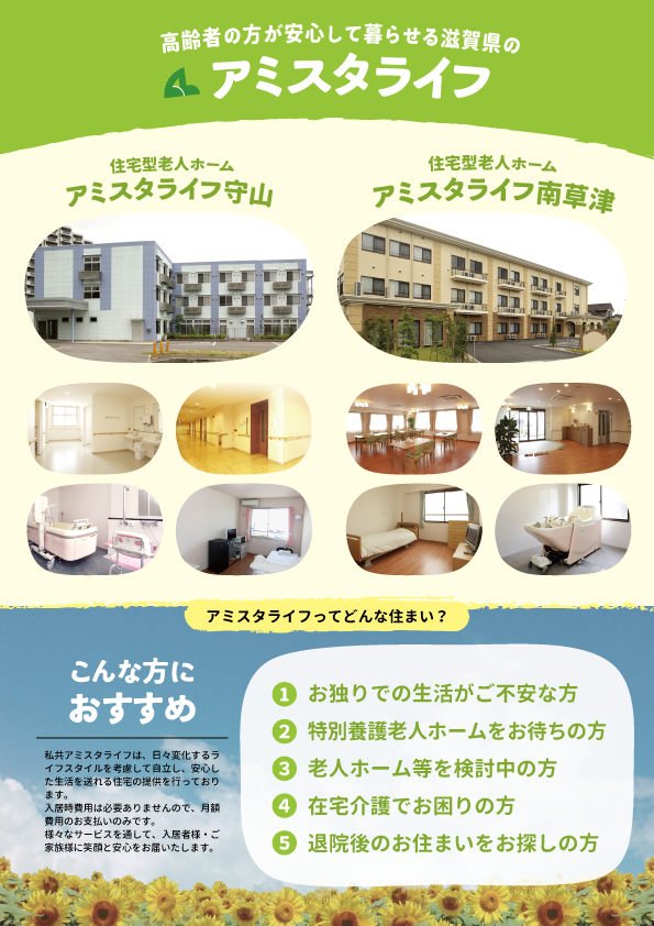 事業の1つである住宅型有料老人ホーム 「アミスタライフ」の