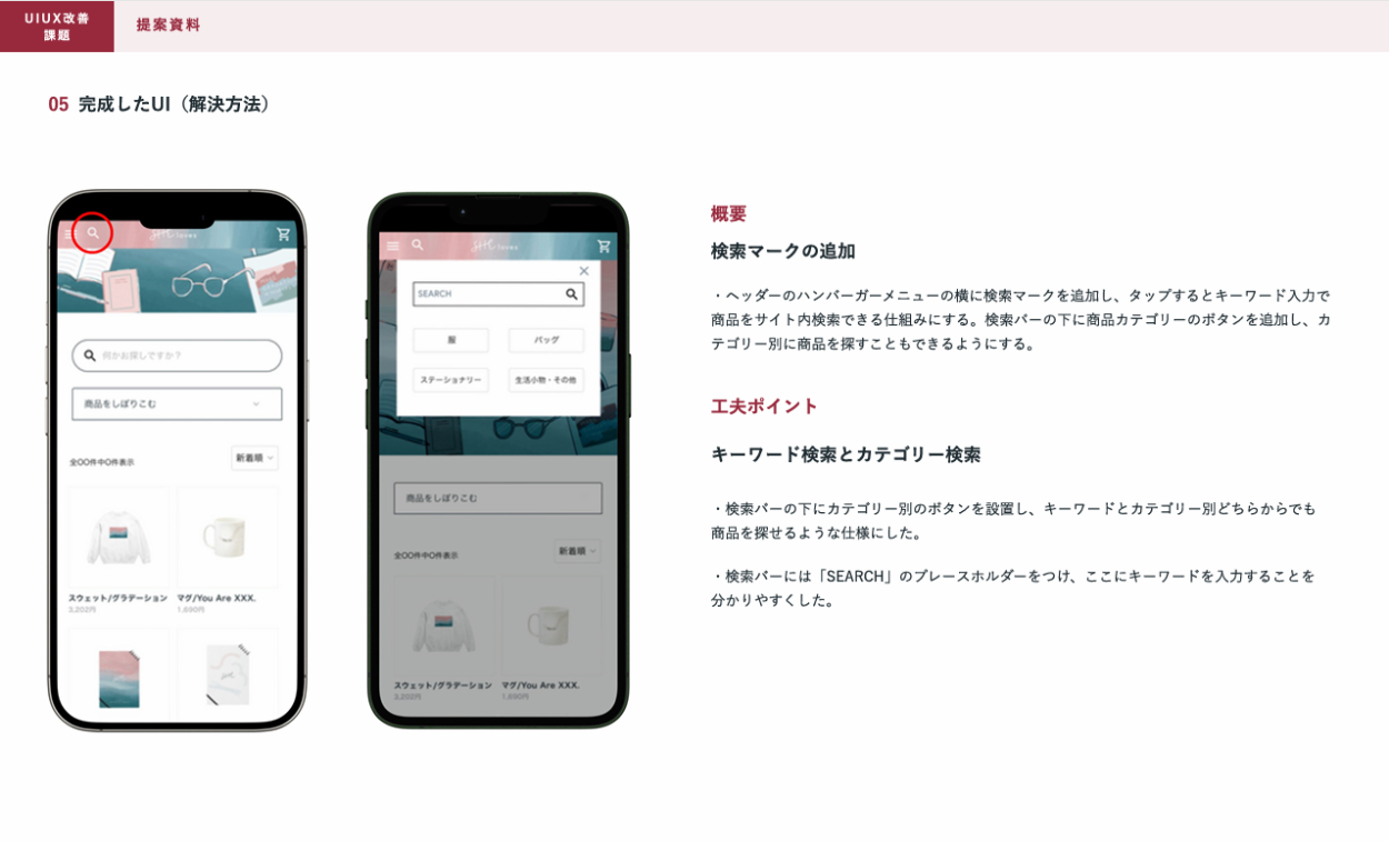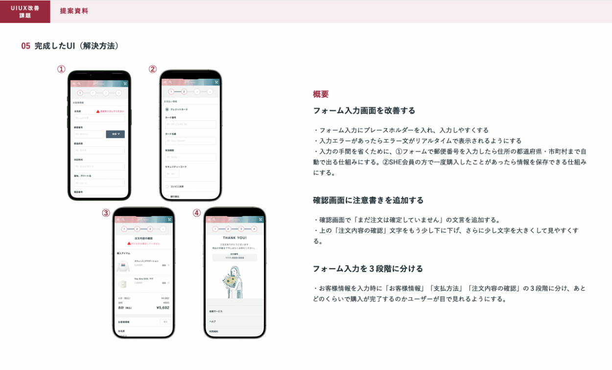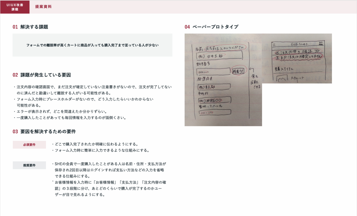 SHElikes MULTI CREATOR COURSEの課題で、既存のWebサイトにおいて架空クライアントの課題の要因を考え、UIUXを提案しました。