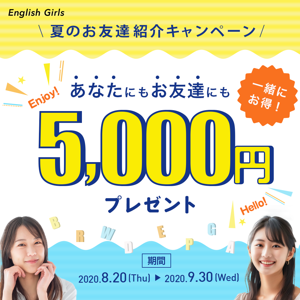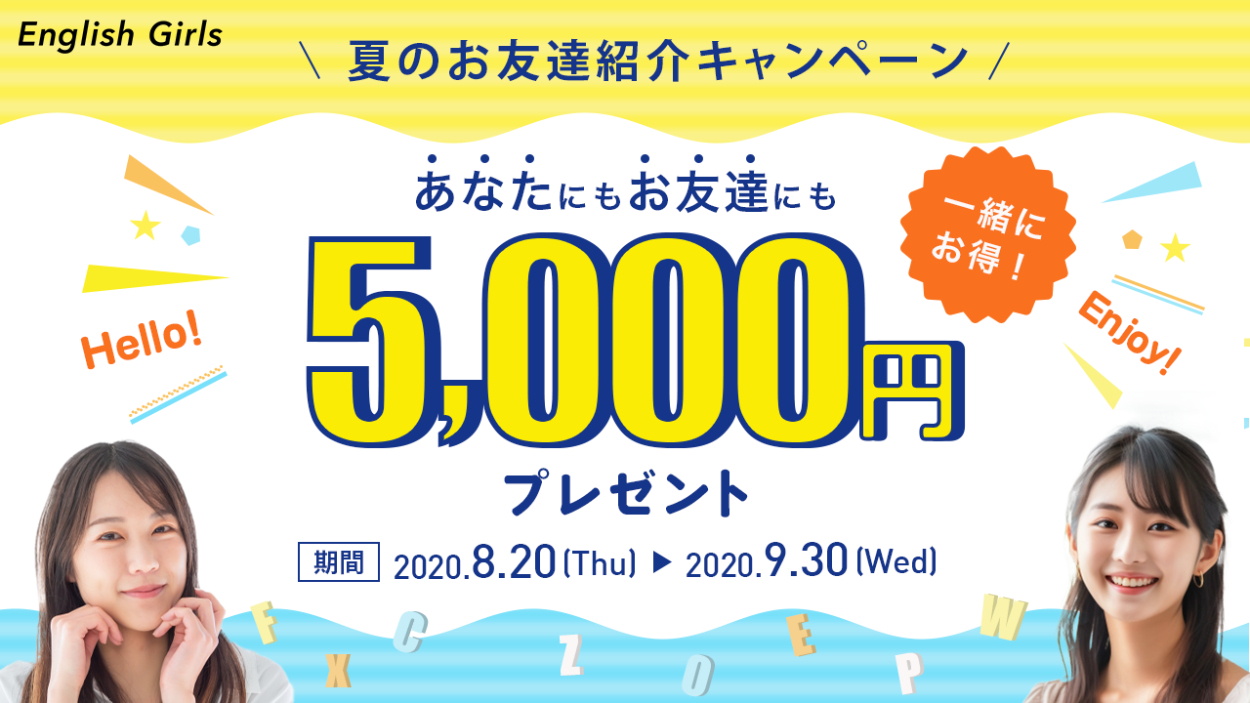 ①一緒にお得②夏のお友達紹介キャンペーン③あなたにもお友達にも5,000円