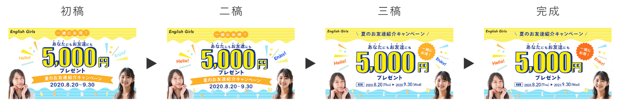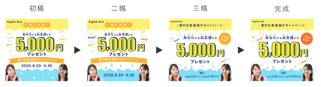 ・講師から何度もフィードバックをもらいブラッシュアップをしていく中で、修正前のバナーの違和感に気が付くことができるようになりました。