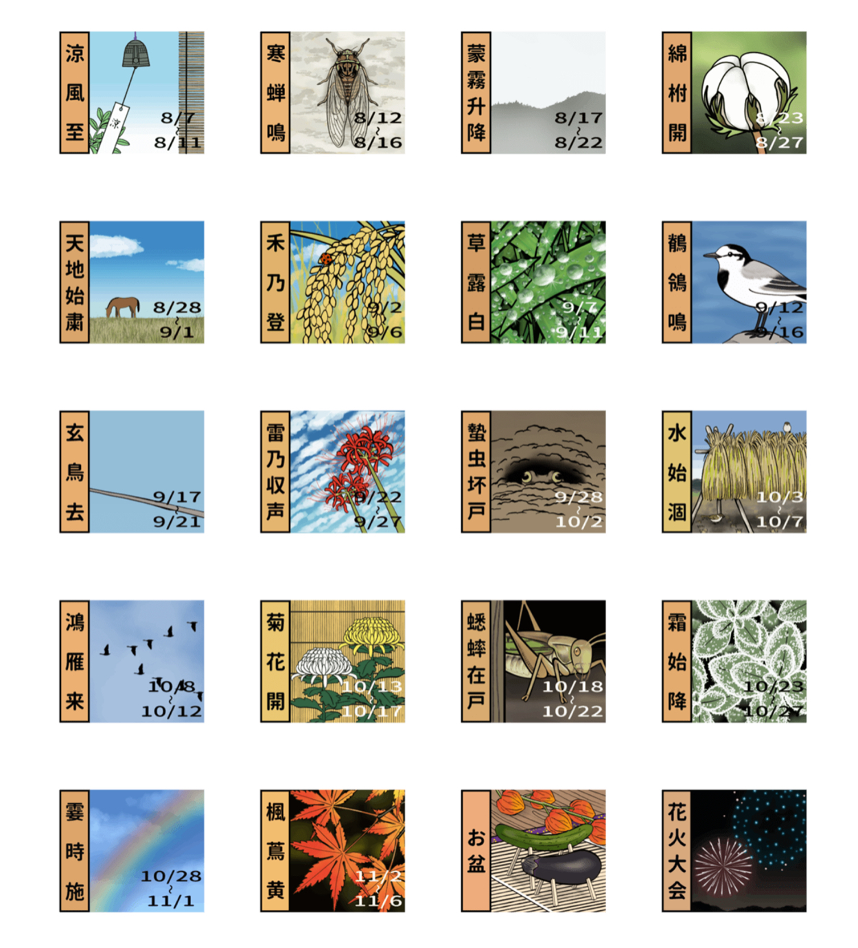LINEスタンプ2 宇津木志加@イラストレーター イラストレーター OVERVIEW アニメーションLINEスタンプ用に描いたイラストです。日本の暦「二十四節気と七十二候」を楽しいアニメにしてみました。販売サイトで動いたものを見ることができます。 YEAR 2018 WEBSITE