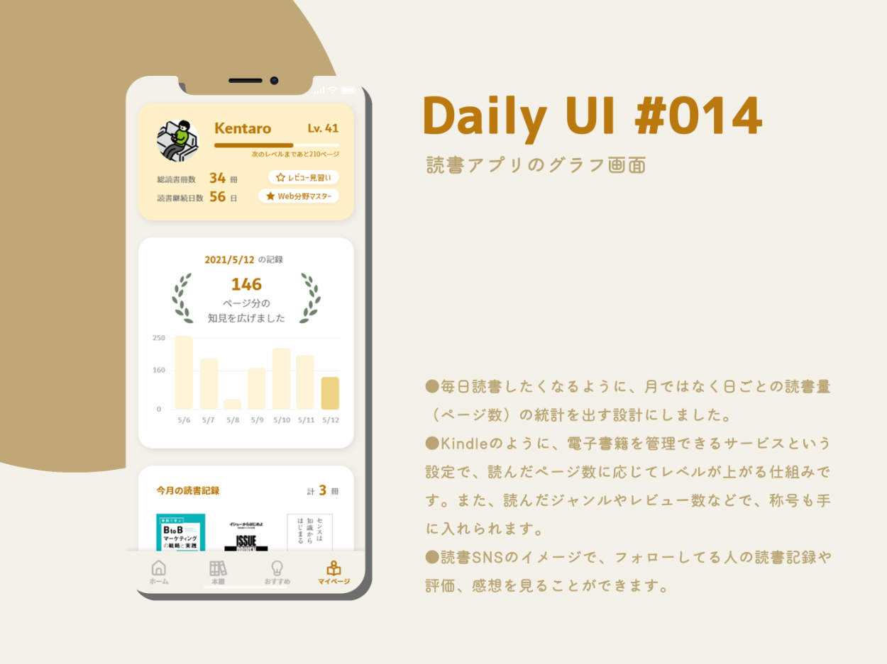 毎日アプリを開きたくなることを狙って、「日々の小さな積み重ね(=ページ数の記録)」が分かるような読書記録画面を作りました。