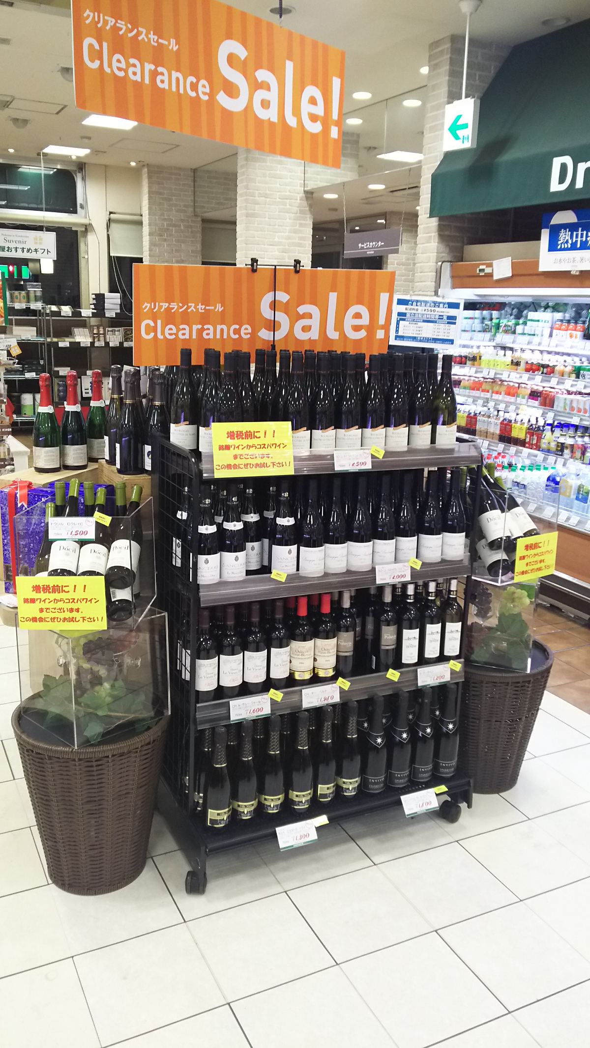・なぜクリアランスセールにしているのかの意図を明確に訴求すること。今回であれば増税前であるという旨をPOPにより訴求し、価値あるおすすめワインを売り込む機会にする。