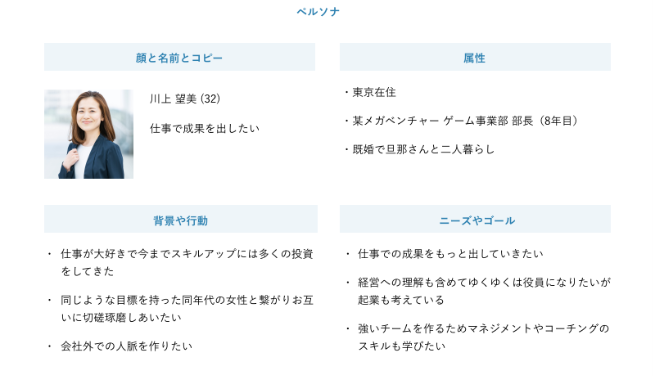 ・ペルソナに自分にぴったりと思ってもらえるような空間で、実際に何が出来るのか、はっきりとわかるように情報を整理して忙しい時間でも最後までページを見れるようなシンプルな構成にした